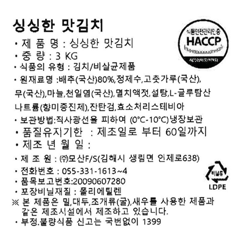 싱싱 맛김치(슬라이스 어린이용 3Kg/EA)