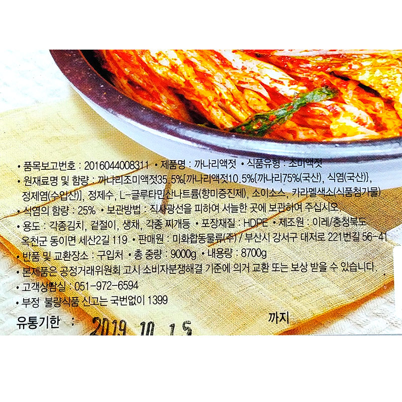 미화합동물류 까나리액젓(9Kg/EA) 이미지
