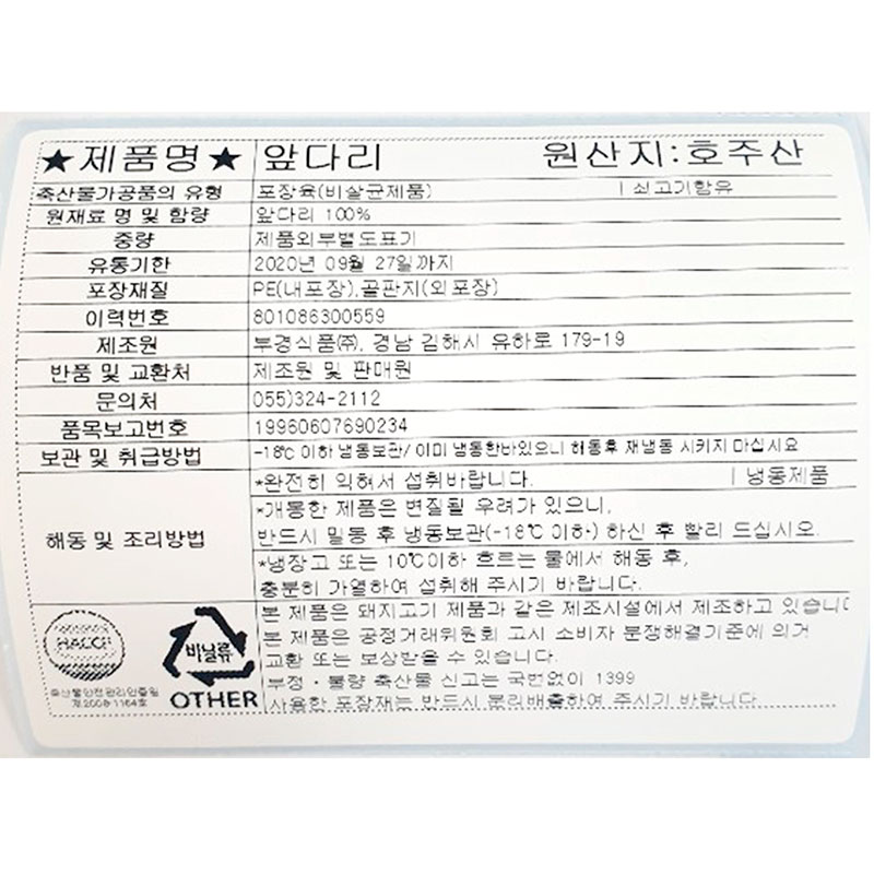 부경식품 소앞다리(1.5*1.5*1.5cm 짜장카레용 KG)/호주산 이미지