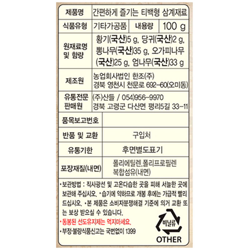 삼계탕재료세트_티백형(당귀+황기+엄나무+오가피+뽕나무 100g/EA)/국내산 이미지