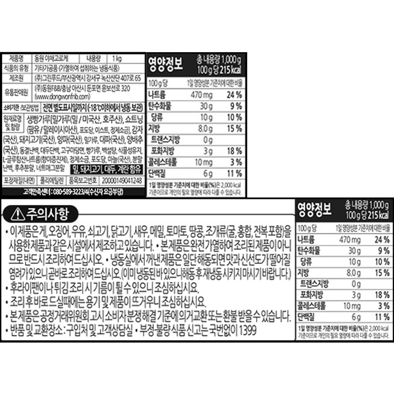 동원 야채고로케(30g/개 1Kg/EA)