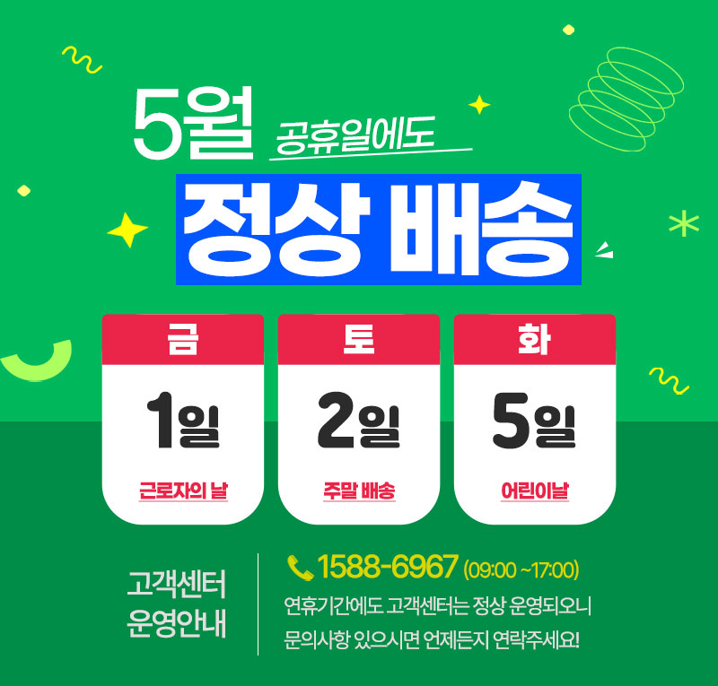 • 택배배송의 경우, 주말 및 공휴일 전일 및 당일에는 상품 발송이 어려울 수 있습니다.