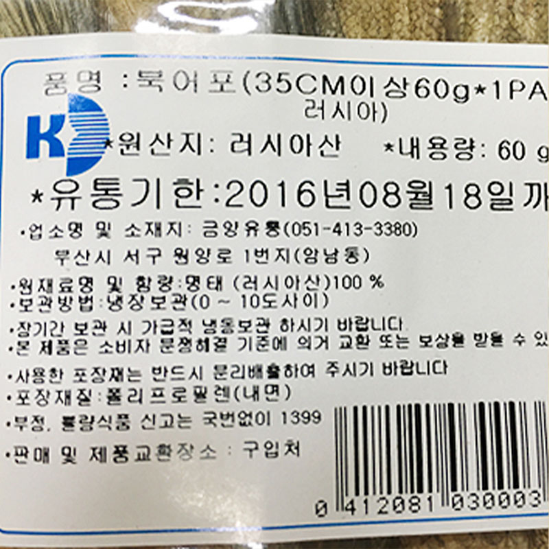 북어포(35cm이상 60g/EA)/러시아산