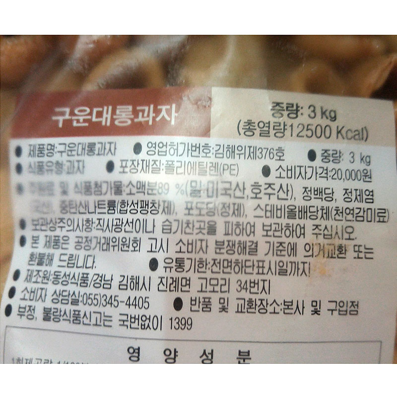 동성식품 대롱과자(3Kg/EA)