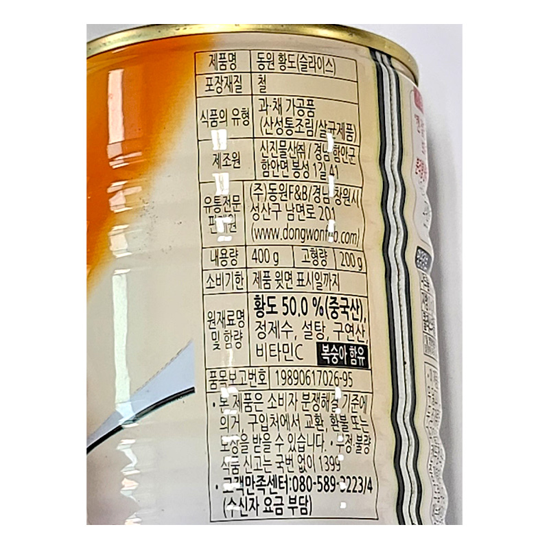 동원F&B 황도캔(2절 400g/EA)