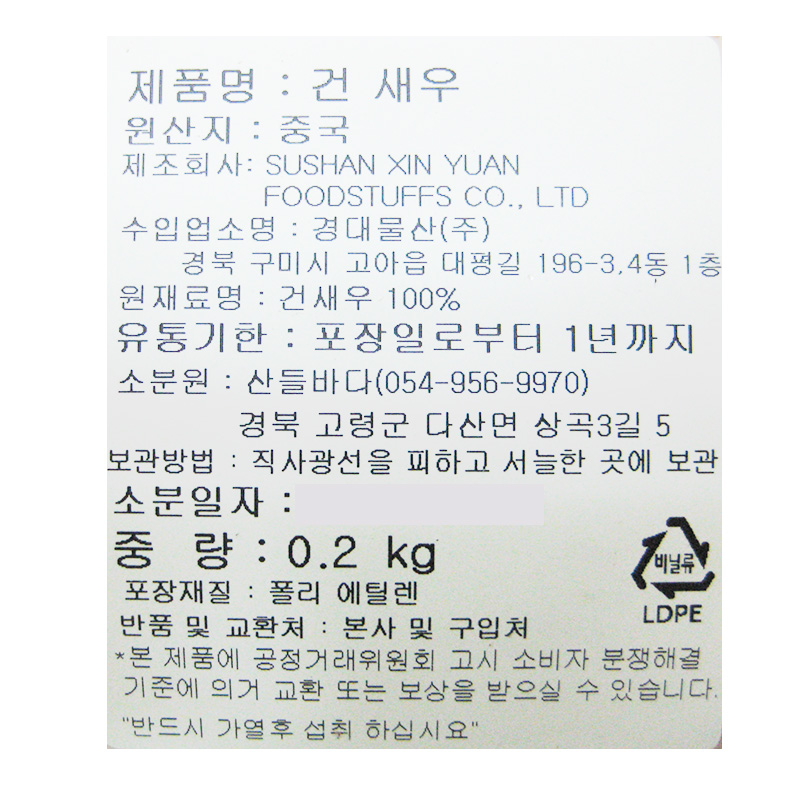 성주식품 건보리새우(200g/EA)/중국산 이미지