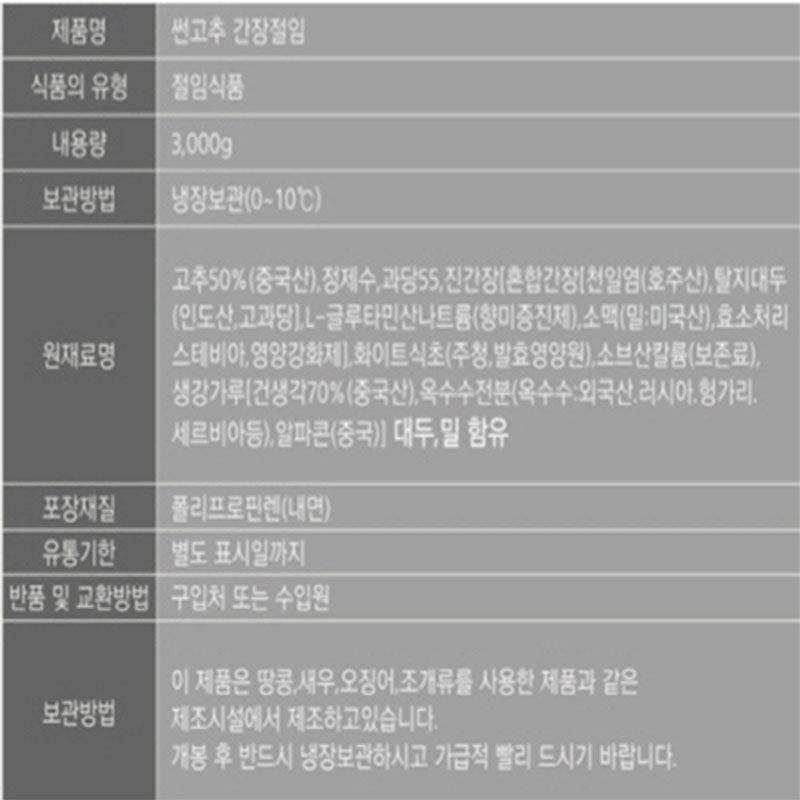 반찬단지 썬고추간장절임(3Kg/EA)