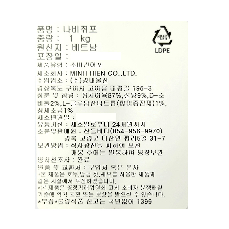 나비쥐포(1Kg/EA)/베트남산