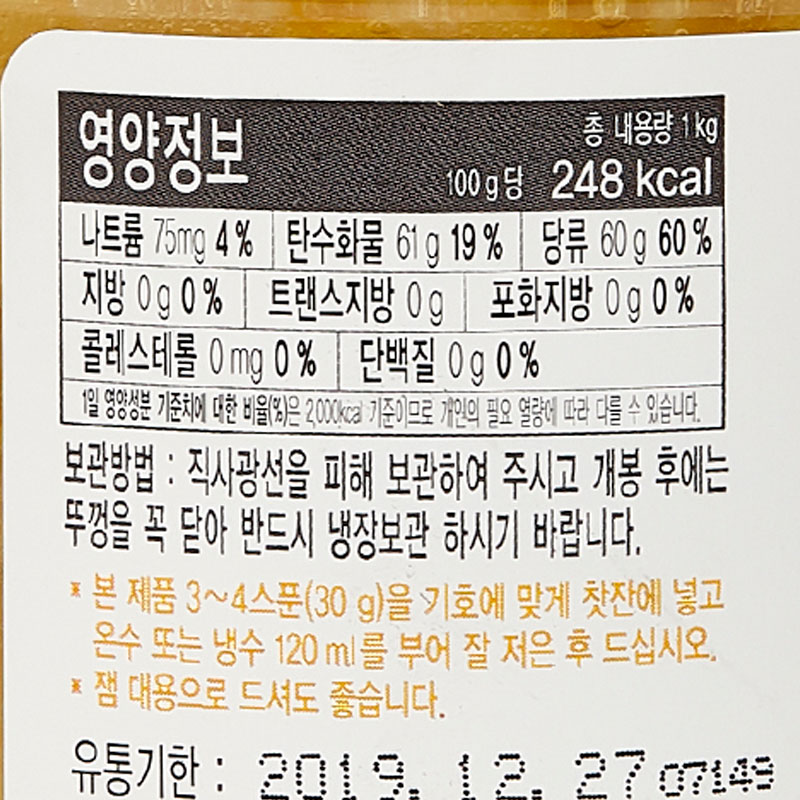 꽃샘식품 꿀레몬차(1L 1Kg/EA) 이미지