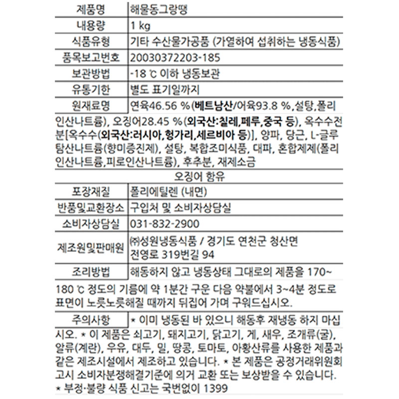 성원냉동식품 해물동그랑땡(12±3g*83±5개입 1Kg/EA)