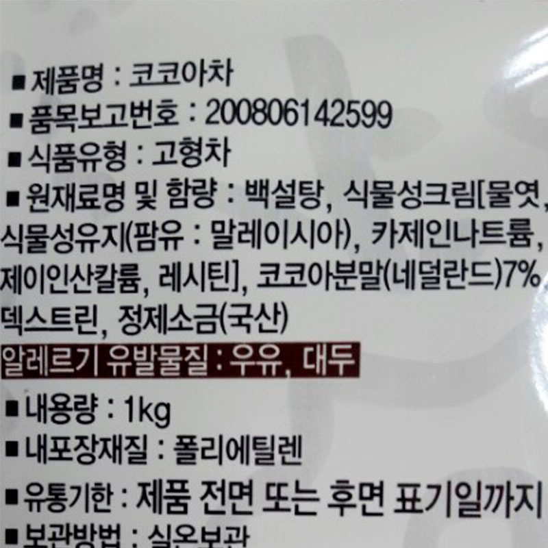 원재료명 및 함량