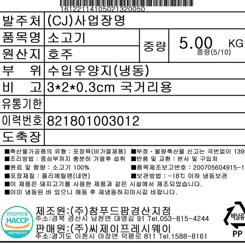 소양지(3*2*0.3cm 국거리용 KG)/호주산 이미지