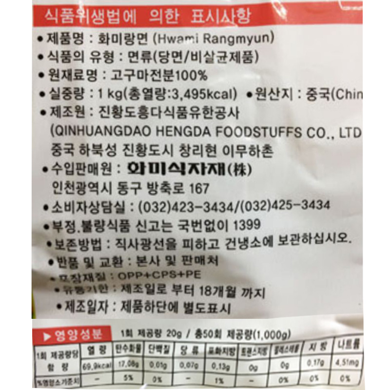 화미 납작당면(랑 1Kg/EA) 이미지