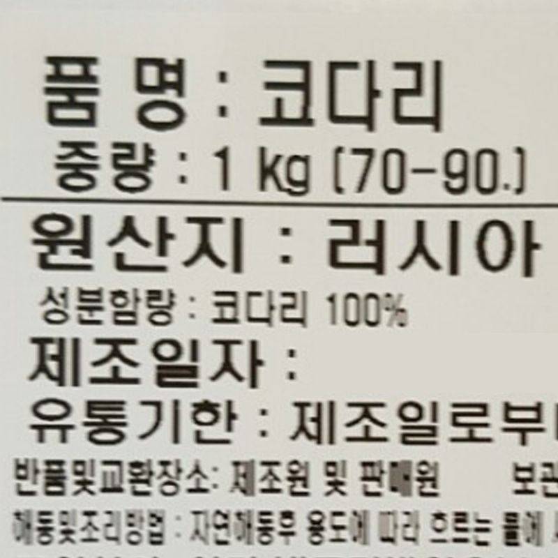 코다리(내장제거_70~90g/토막 KG)/러시아산 이미지
