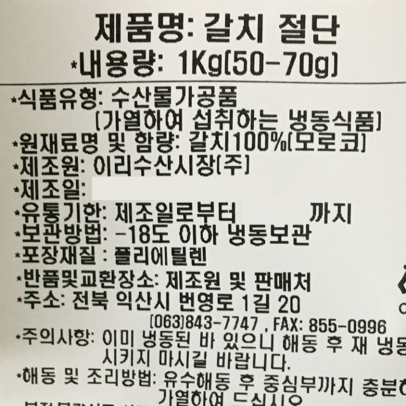 갈치(내장제거_50~70g/토막 KG)/모로코산 이미지