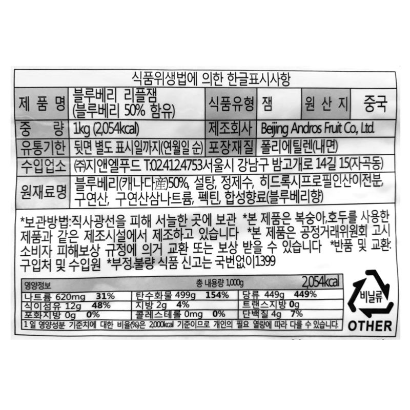 앤드로스 블루베리리플잼(1Kg/EA) 이미지