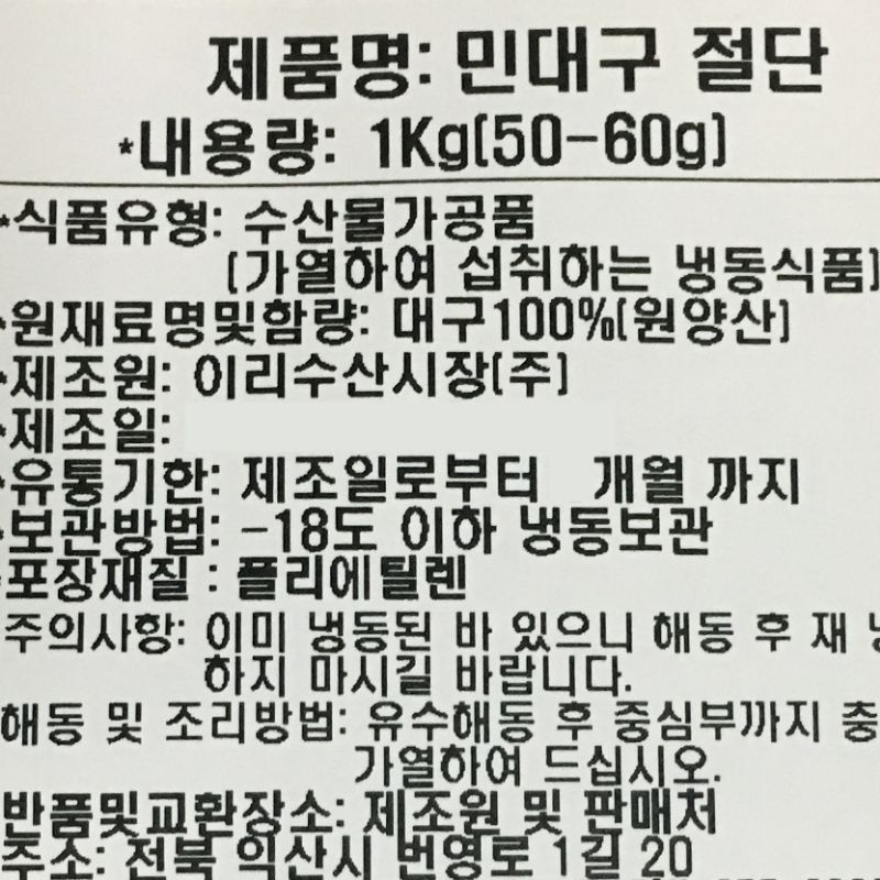 민대구(50~60g/토막 탕용 KG)/원양산 이미지