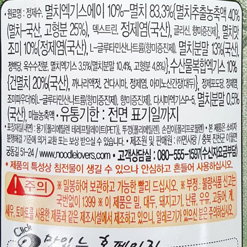 면사랑 멸치육수(프리미엄 밑국물_1.8L 1.8Kg/EA) 이미지
