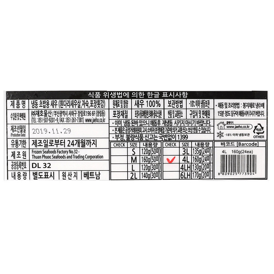 재호물산 초새우(4L_24미 초밥용 160g/EA)/베트남산