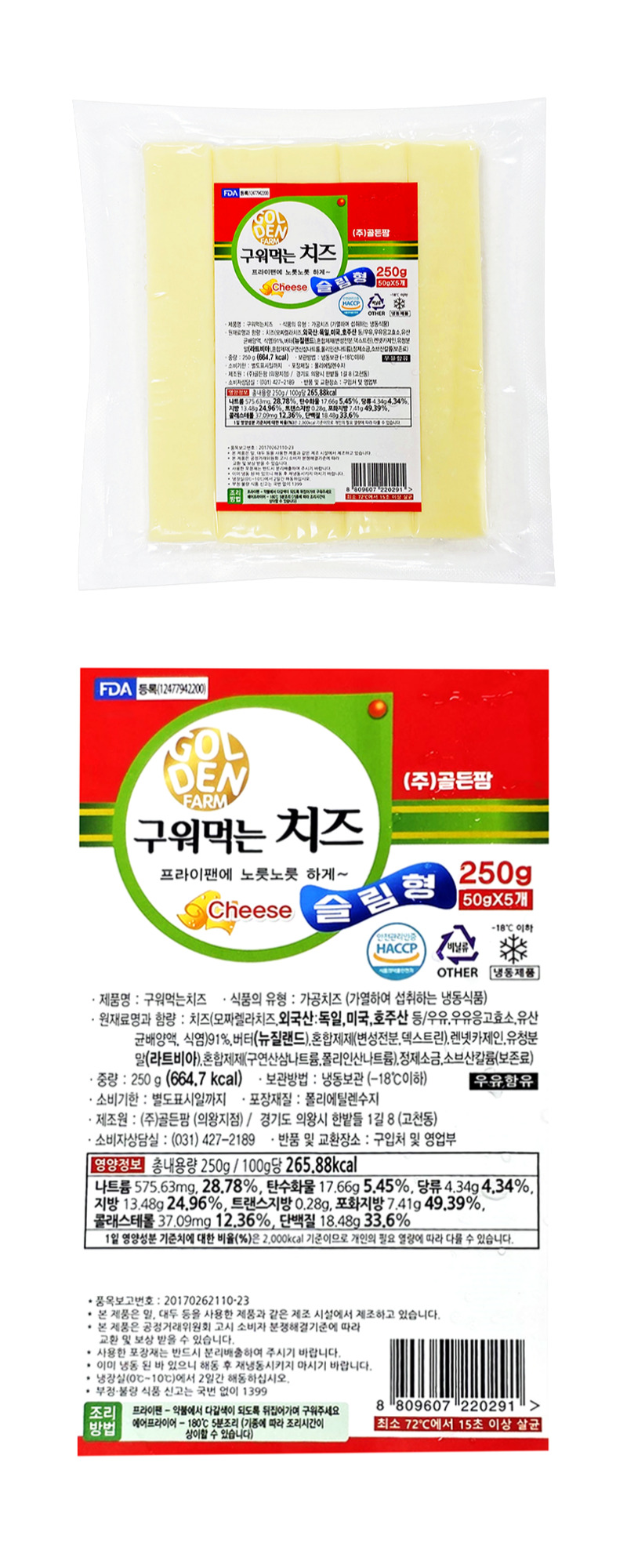 골든 구워먹는 치즈 슬림형 250g (50g*5개입)