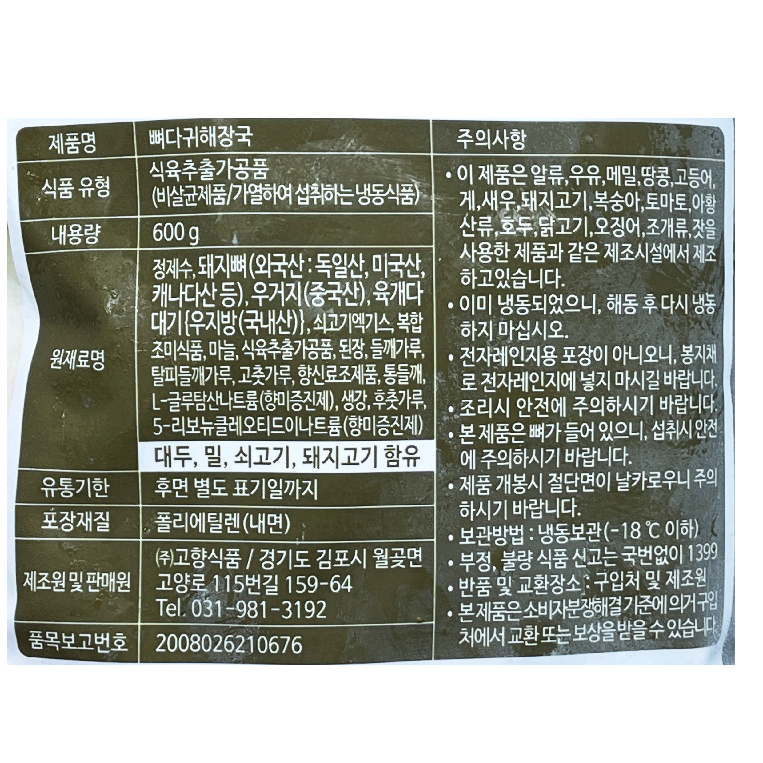 옛맛 뼈다귀해장국 600g 뼈해장국 이미지