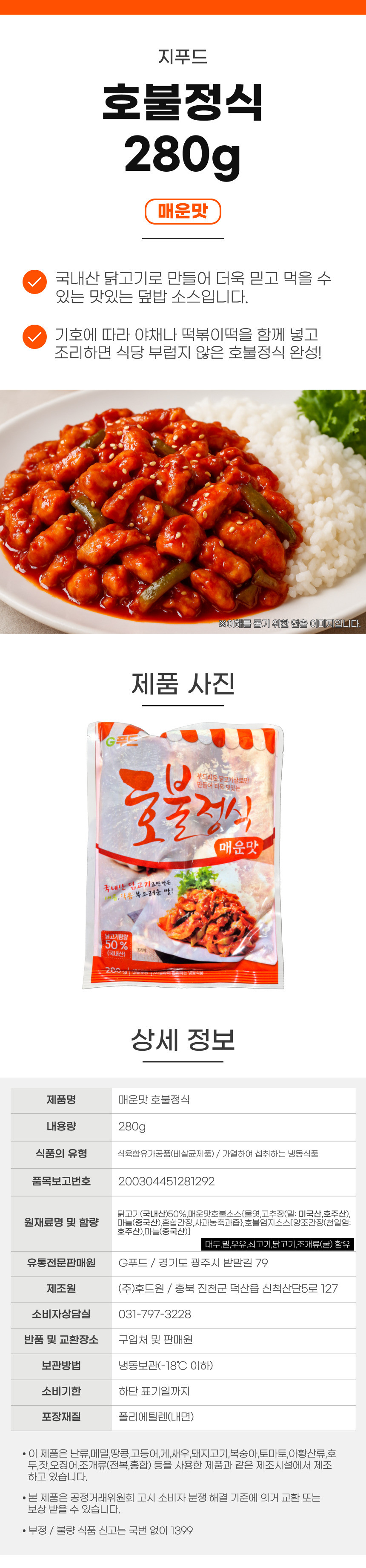 지푸드 호불정식 매운맛 280g 닭갈비 덮밥 이미지