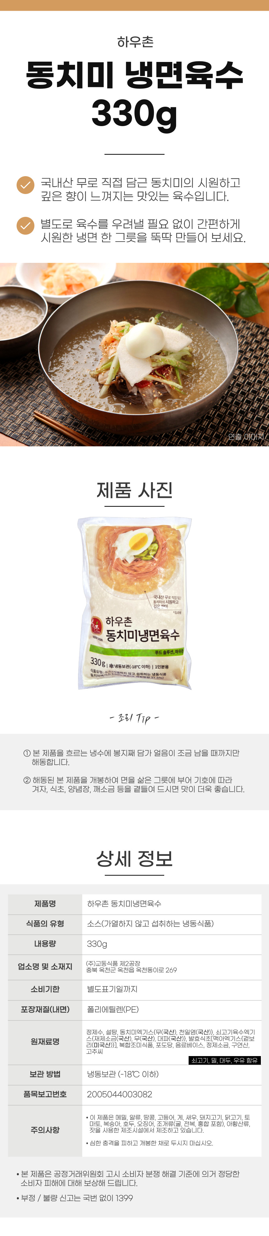 하우촌 동치미 냉면육수 330g 물냉면 비빔냉면 물회육수