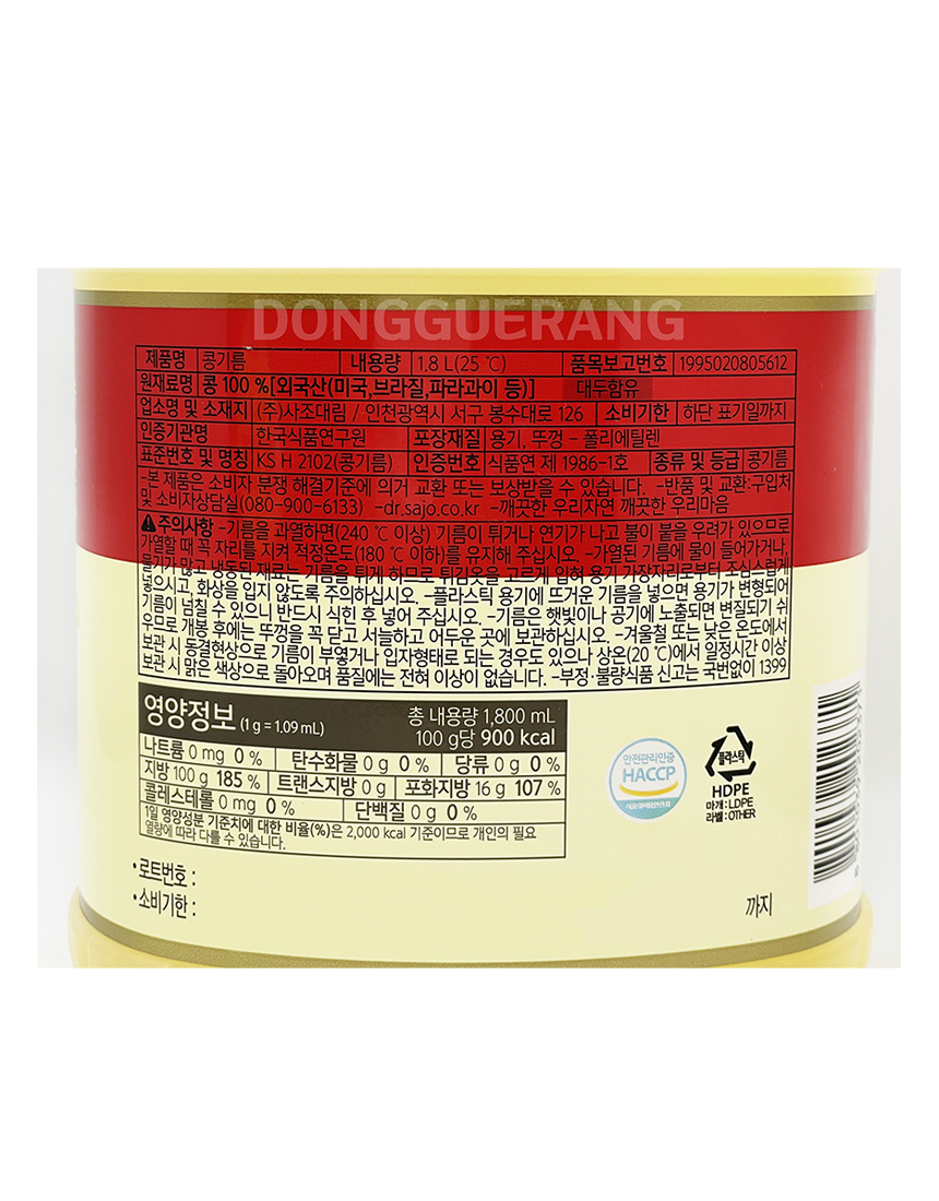 해표 식용유(소/콩기름) 1.8L 이미지