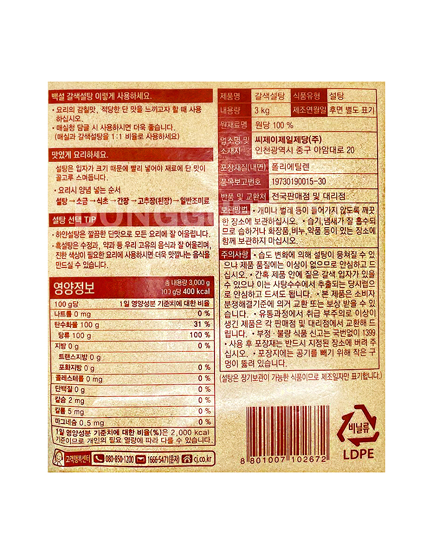 백설 갈색설탕 (황설탕) 3kg 이미지