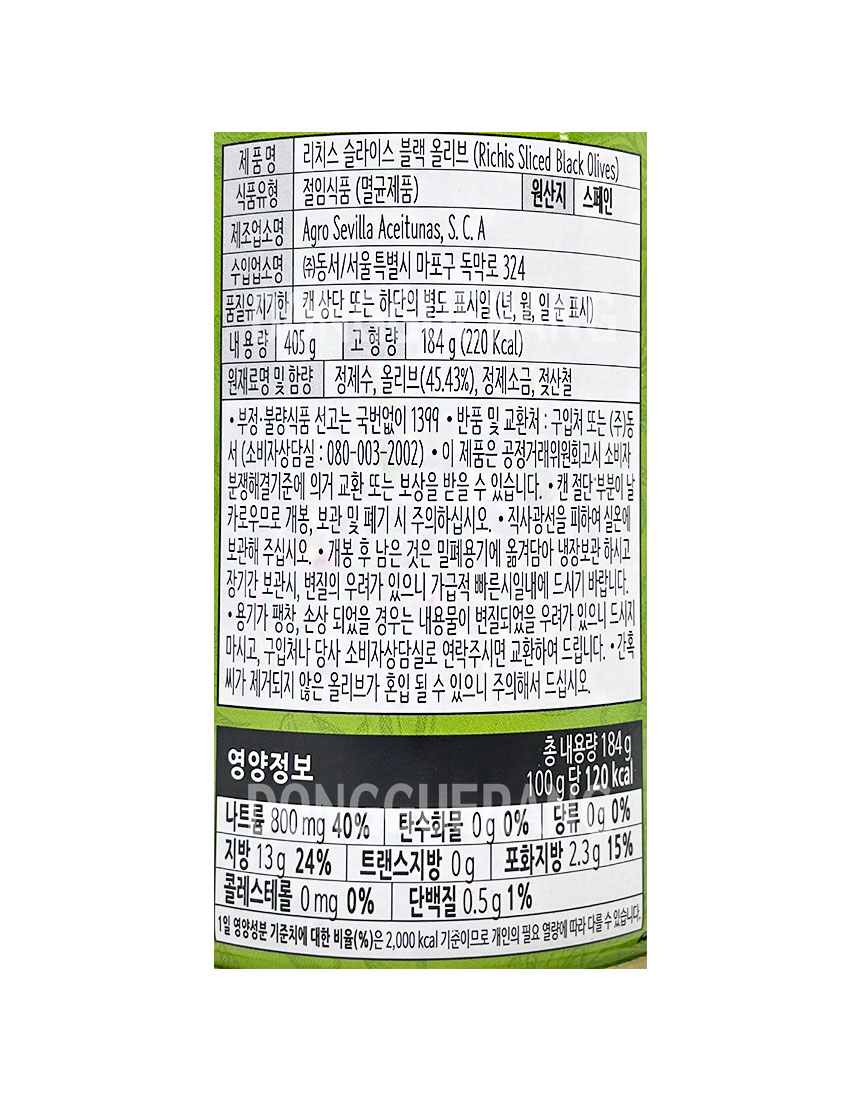 블랙올리브(소/슬라이스)