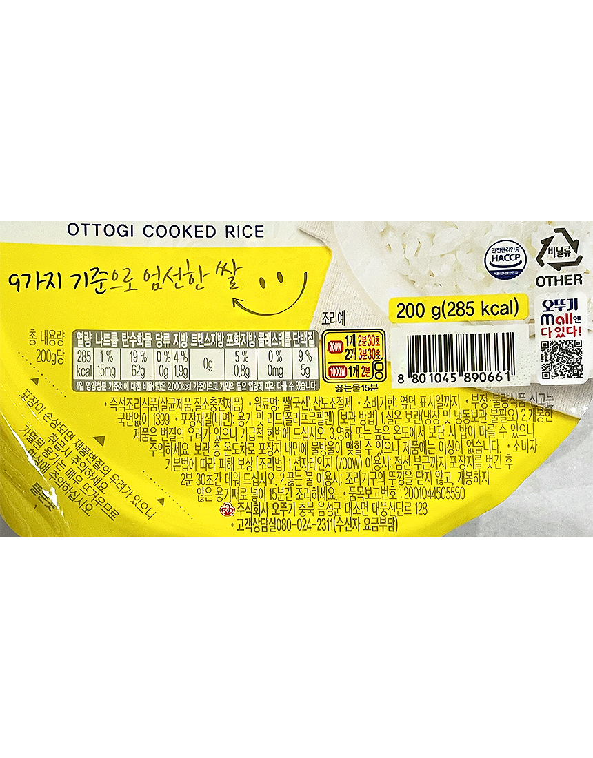 오뚜기밥 낱개 (즉석밥/쌀밥/백미/햇반/흰밥/오뚜기) 210g ea