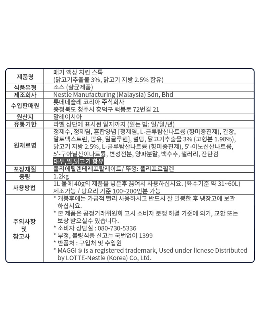 매기소스(액상/치킨스톡stock/네슬레) 1.2kg