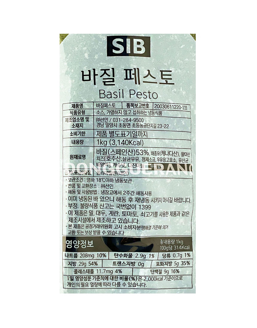 바질페스토(선인/냉동/바질53%/스프레드/파스타/피) 1kg