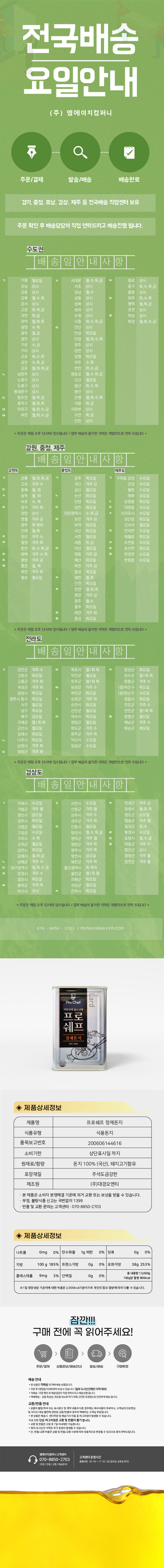 ※ 제주 배송 지역은 폐유 수거 시 도서지역으로 분류되어 폐유 값이 "18L 캔" 기준 일만천원(11,000) 입니다.
