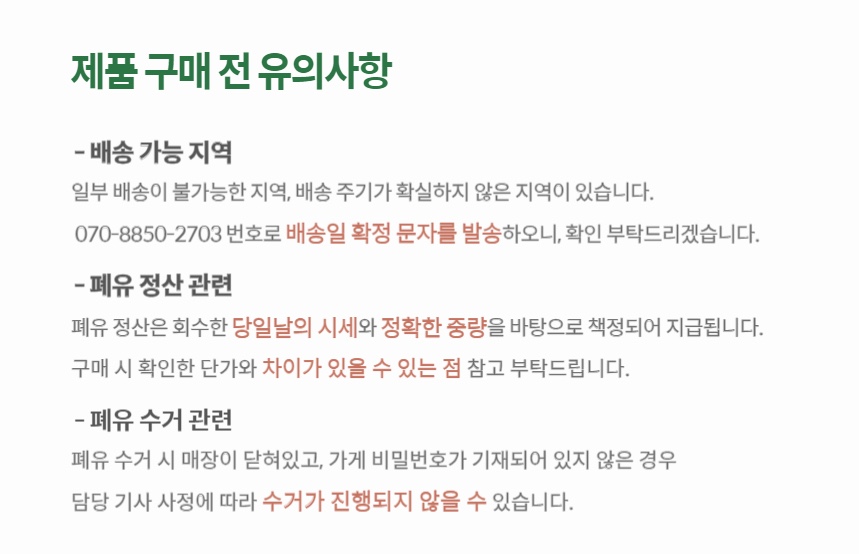 ※ 또한 강원도 지역은 일시적으로 품절되어 배송이 불가한점 참고 부탁드립니다.