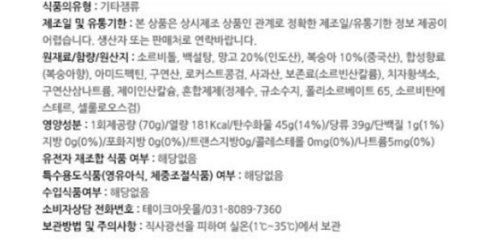 원재료명 및 함량
