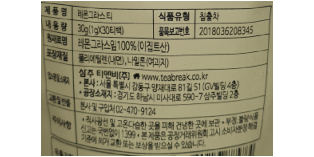 원재료명 및 함량