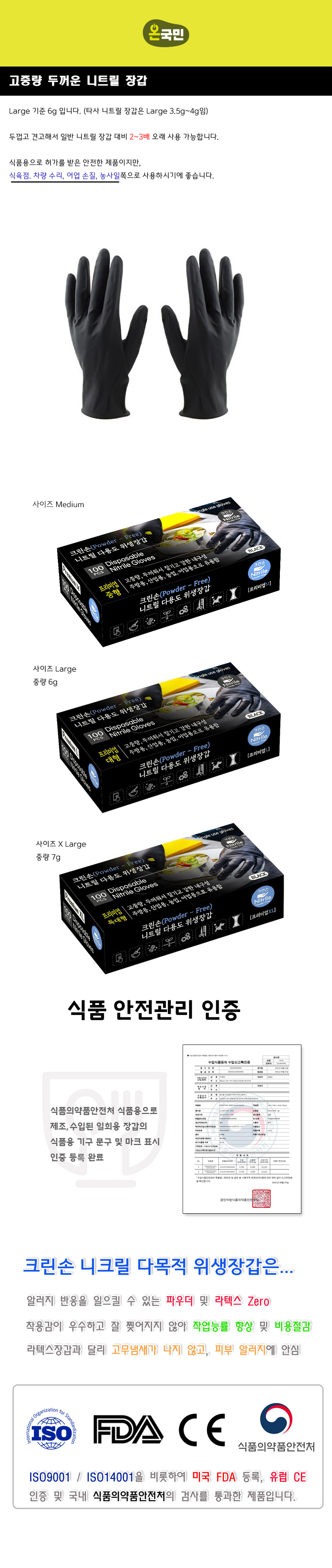 크린손 니트릴 다용도 위생장갑 프리미엄 특대형 블랙 100매