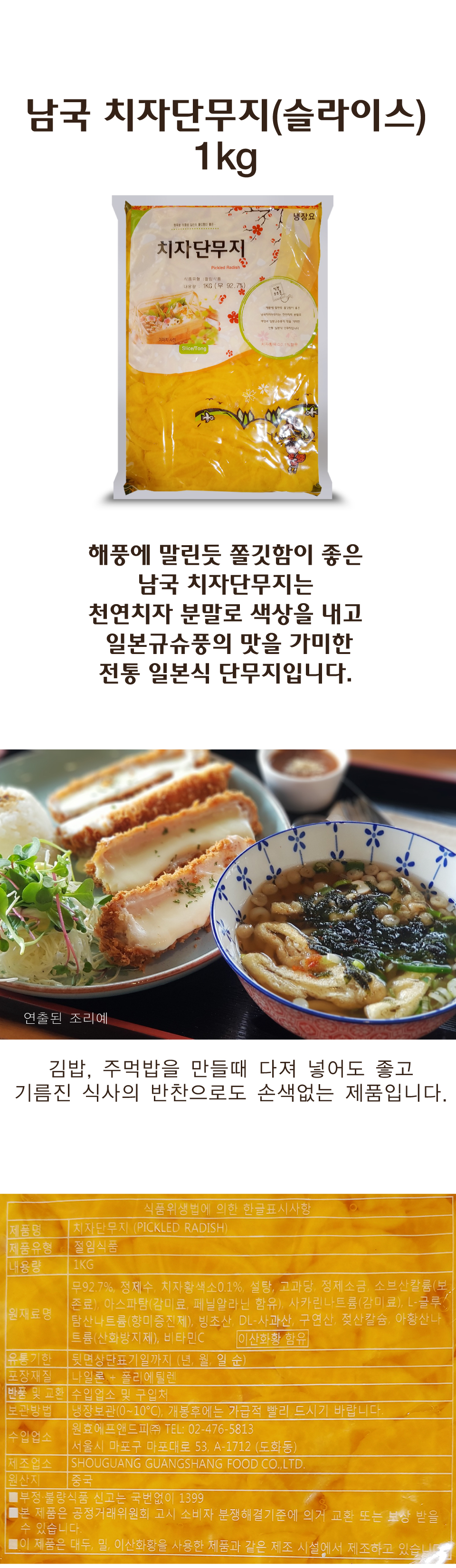 남국 치자단무지 슬라이스단무지 1kgX10팩/꼬들단무지/일식/중식 이미지