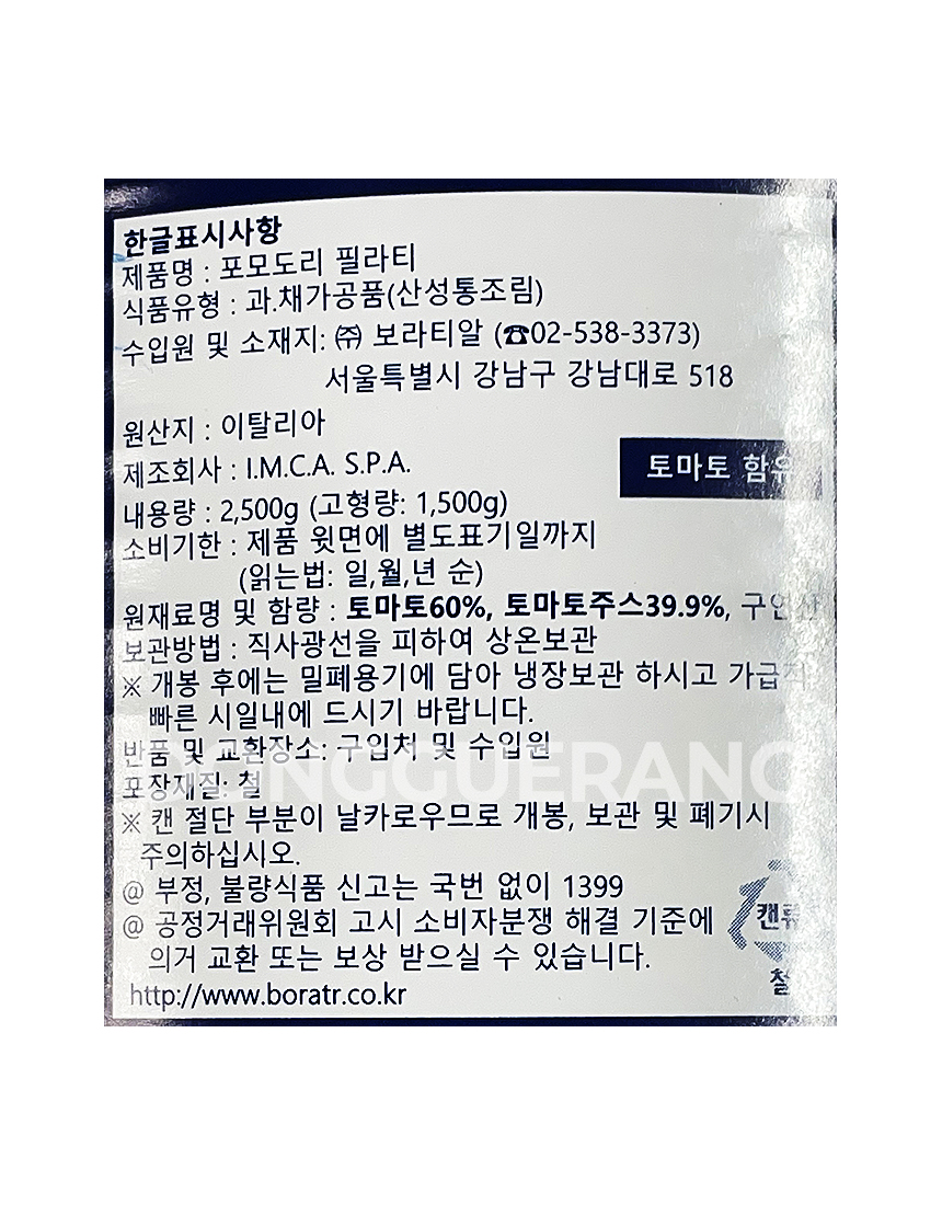 프라텔리 롱고발디 토마토홀 2.55kg (보라/포모도리 필라티)