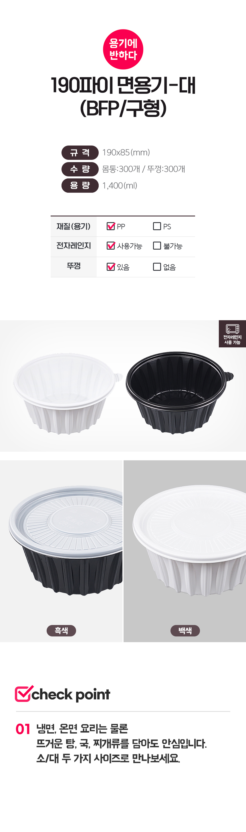 ![[BFP/구형] 냉면용기 190파이 대 (흑색) 300세트 탕용기 일회용 우동 칼국수 [몸통+뚜껑] 이미지](https://content.foodspring.co.kr/vendor/2391/images/33_8164712698.jpg?f=webp&s=876x876&t=inside)