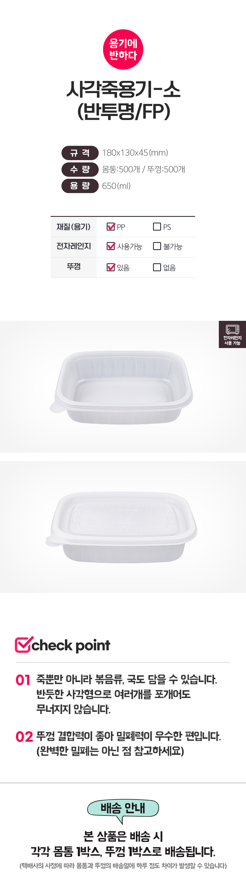 ![[배송지연] [FP] 사각죽용기 소(반투명)500개 세트 [몸통+뚜껑] 이미지](https://content.foodspring.co.kr/vendor/2391/images/25_7223719662_r.jpg?f=webp&s=876x876&t=inside)