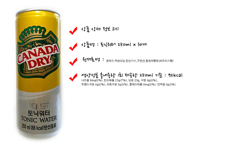 캐나다드라이 토닉워터 250ml x 30개 이미지