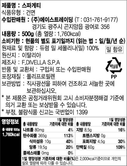 디벨라 스파게티(8번 500g/EA)
