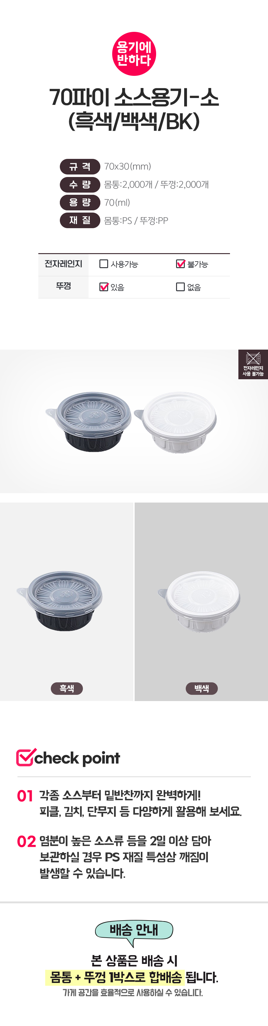![[BK] 일회용 소스용기 70파이 소 흑색 2000개세트 [합포장] 이미지](https://content.foodspring.co.kr/vendor/2391/images/74_4943530855_r.jpg?f=webp&s=876x876&t=inside)