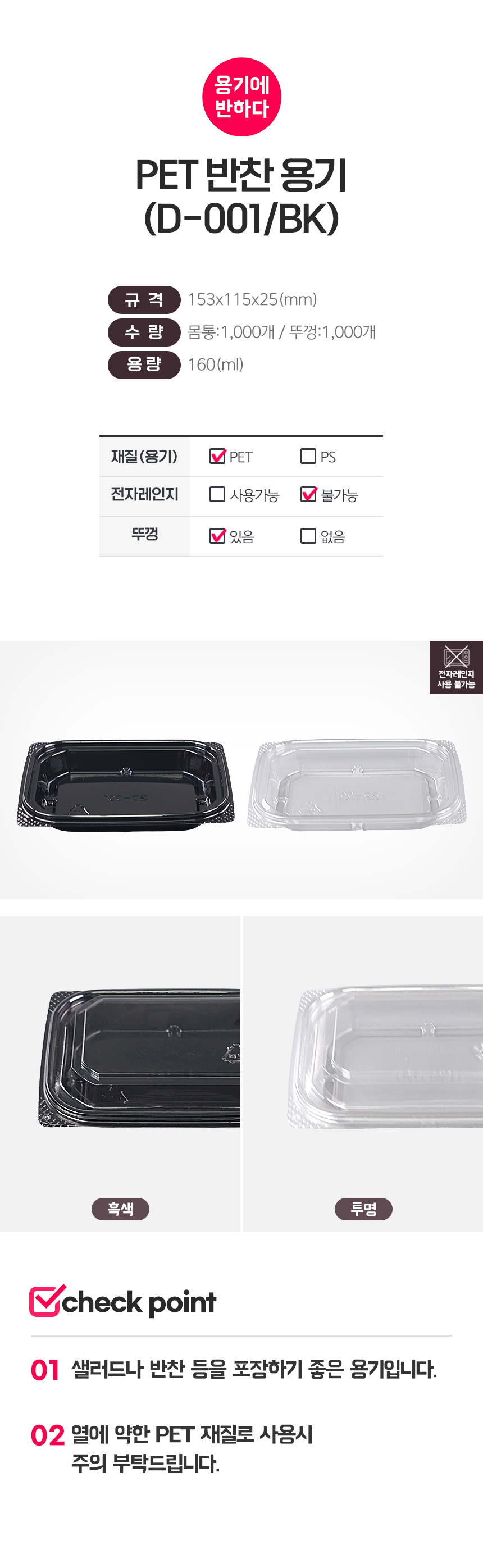 ![[배송지연] [BK] 일회용 PET 반찬포장용기 D-001(흑색)1000개세트 [몸통+뚜껑] 이미지](https://content.foodspring.co.kr/vendor/2391/images/11_8067237911_r.jpg?f=webp&s=876x876&t=inside)