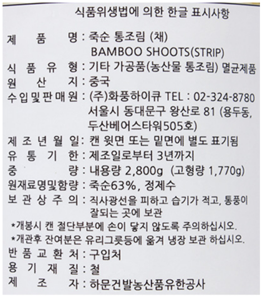화풍 죽순캔(채) 2.8kg