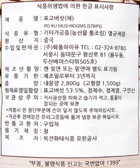 화풍 표고버섯캔(채) 2.8kg