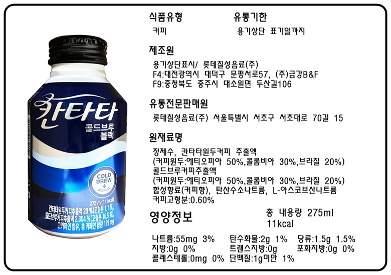 원재료명 및 함량