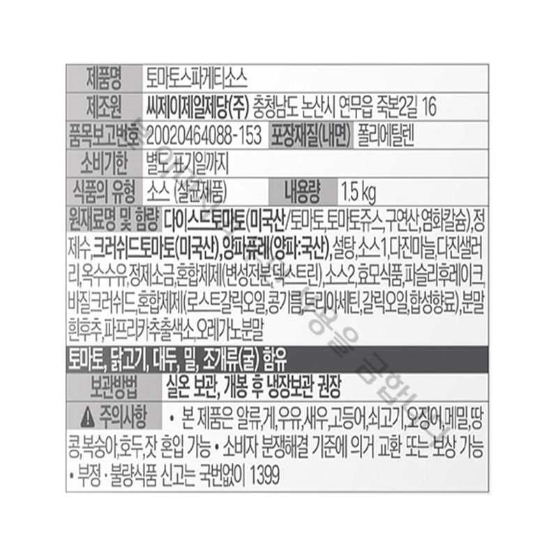 백설 토마토스파게티소스(1.5Kg/EA)